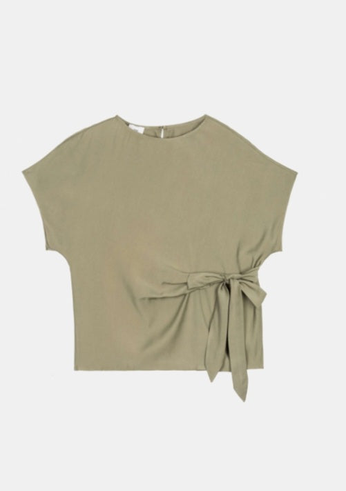 Top rayonne polyester ceinturé taille