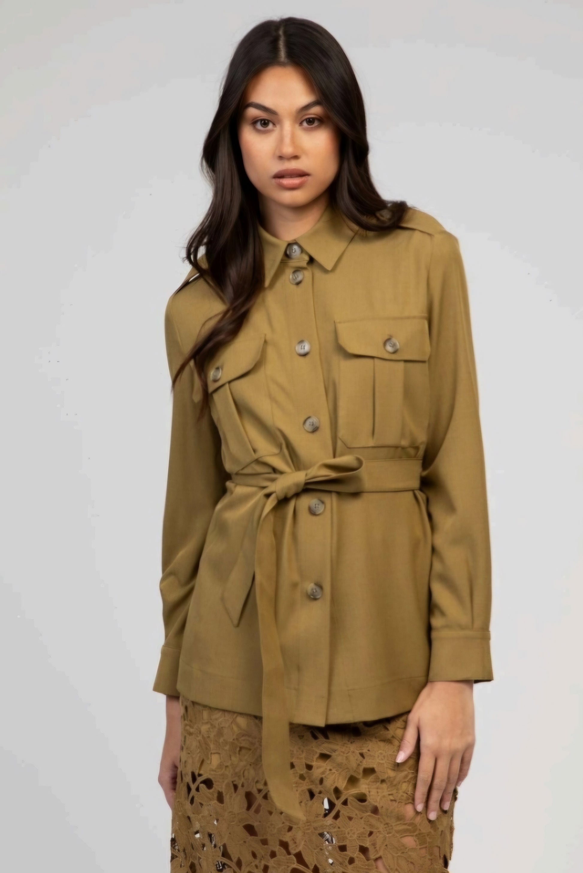 Veste Saharienne non doublée et ceinturée.. Couleur olive